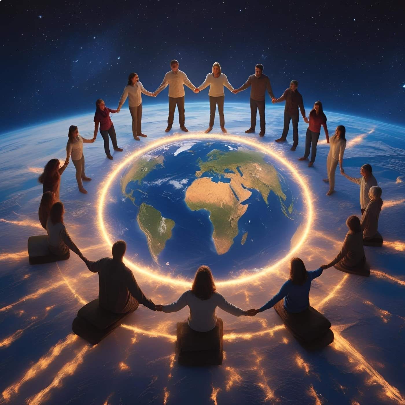 Enfin, pour finir, nous unirons nos forces pour créer un cercle de lumière pour l'Humanité